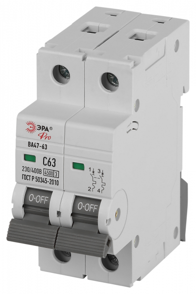 В нашем магазине «Главэлектрика» в Набережных Челнах, вы можете приобрести товар: «Автоматический выключатель ЭРА PRO VA63-2P63C4.5 ВА47-63 2P 63А кривая C 4,5кА (кратно 1)» с доставкой по г. Набережные Челны.