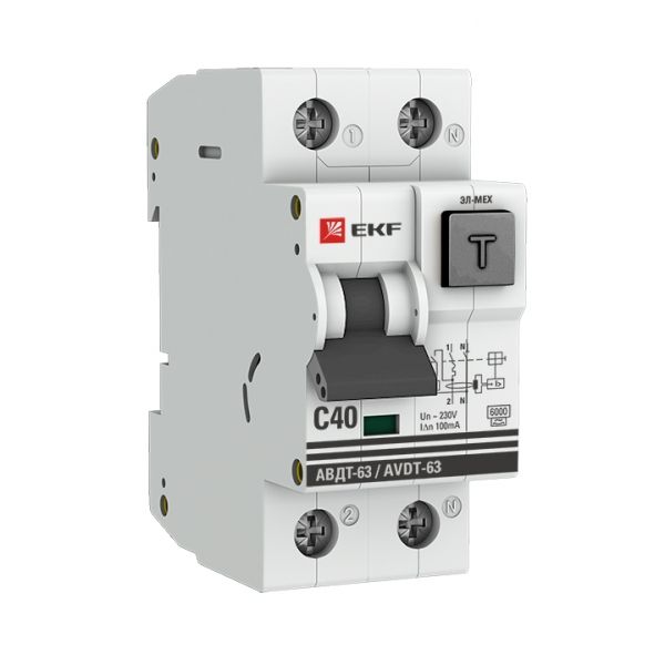 ОБНОВЛЕНИЕ ЛИНЕЙКИ PROXIMA Артикул аналог: D63N26MA40C100 Автоматический выключатель дифференциального тока АВДТ-63 EKF PROxima представляет аппарат, сочетающий функции автоматического выключателя с электромеханическим или электронным УЗО. При обнаружении автоматическим выключателем в защищаемом участке сети тока утечки (повреждения) на землю или сверхтока (тока перегрузки или короткого замыкания) происходит срабатывание устройства, приводящее к отключению защищаемой сети. Возможна коммутация алюминиевым и медным проводником. Автоматический выключатель дифференциального тока малогабаритный АВДТ-63М EKF PROxima представляет аппарат, сочетающий функции автоматического выключателя с электронным УЗО типа АС в компактном корпусе шириной один модуль. При обнаружении автоматическим выключателем на защищаемом участке сети тока утечки (повреждения) на землю или сверхтока (тока перегрузки или короткого замыкания) происходит срабатывание устройства, приводящее к отключению защищаемой сети. Особое отличие дифференциальных автоматических выключателей EKF с электронным УЗО – в наличии блока защиты от перенапряжения. Возможна коммутация алюминиевым и медным проводом.