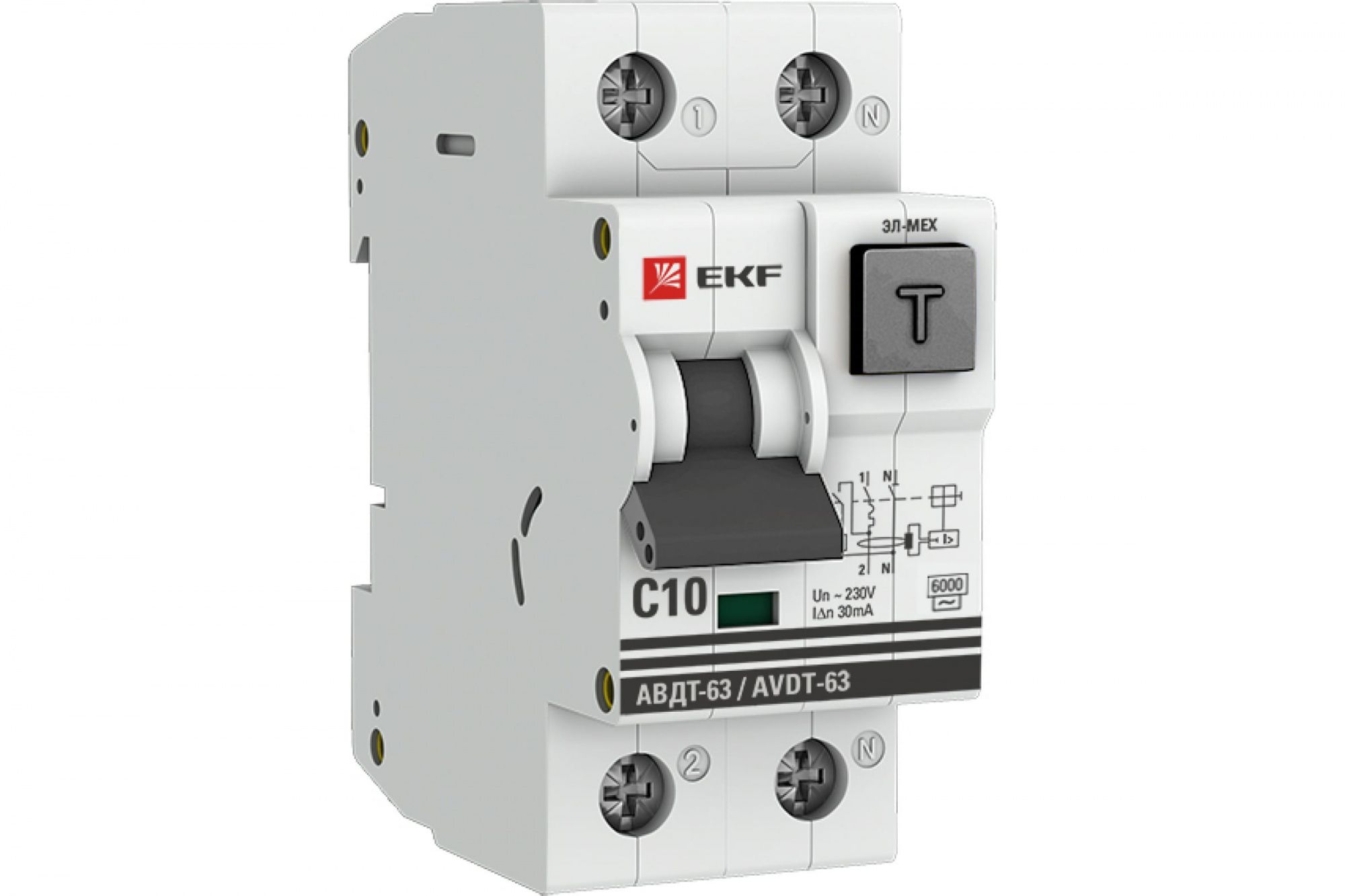 ОБНОВЛЕНИЕ ЛИНЕЙКИ PROXIMA Артикул аналог: D63N26M10C30 Автоматический выключатель дифференциального тока АВДТ-63 EKF PROxima представляет аппарат, сочетающий функции автоматического выключателя с электромеханическим или электронным УЗО. При обнаружении автоматическим выключателем в защищаемом участке сети тока утечки (повреждения) на землю или сверхтока (тока перегрузки или короткого замыкания) происходит срабатывание устройства, приводящее к отключению защищаемой сети. Возможна коммутация алюминиевым и медным проводником. Автоматический выключатель дифференциального тока малогабаритный АВДТ-63М EKF PROxima представляет аппарат, сочетающий функции автоматического выключателя с электронным УЗО типа АС в компактном корпусе шириной один модуль. При обнаружении автоматическим выключателем на защищаемом участке сети тока утечки (повреждения) на землю или сверхтока (тока перегрузки или короткого замыкания) происходит срабатывание устройства, приводящее к отключению защищаемой сети. Особое отличие дифференциальных автоматических выключателей EKF с электронным УЗО – в наличии блока защиты от перенапряжения. Возможна коммутация алюминиевым и медным проводом.