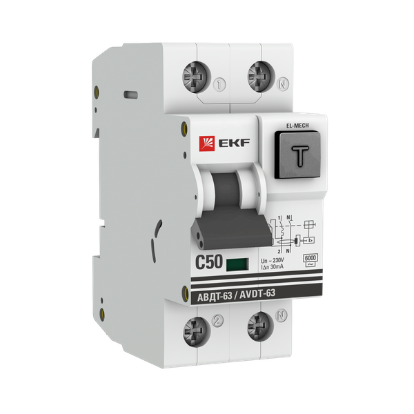Автоматический выключатель дифференциального тока АВДТ-63 EKF PROxima представляет аппарат, сочетающий функции автоматического выключателя с электромеханическим или электронным УЗО. При обнаружении автоматическим выключателем в защищаемом участке сети тока утечки (повреждения) на землю или сверхтока (тока перегрузки иликороткого замыкания) происходит срабатывание устройства, приводящее к отключению защищаемой сети. Возможна коммутация алюминиевым и медным проводником.Автоматический выключатель дифференциального тока малогабаритный АВДТ-63М EKF PROxima представляет аппарат, сочетающий функции автоматического выключателя с электронным УЗО типа АС в компактном корпусе шириной один модуль. При обнаружении автоматическим выключателем на защищаемом участке сети тока утечки (повреждения) на землю или сверхтока (тока перегрузки или короткого замыкания) происходит срабатывание устройства, приводящее к отключению защищаемой сети. Особое отличие дифференциальных автоматических выключателей EKF с электронным УЗО – в наличии блока защиты от перенапряжения. Возможна коммутация алюминиевым и медным проводом.