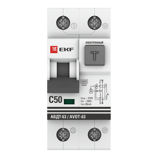 ОБНОВЛЕНИЕ ЛИНЕЙКИ PROXIMA Артикул аналог: D63N26E50C30 Автоматический выключатель дифференциального тока АВДТ-63 EKF PROxima представляет аппарат, сочетающий функции автоматического выключателя с электромеханическим или электронным УЗО. При обнаружении автоматическим выключателем в защищаемом участке сети тока утечки (повреждения) на землю или сверхтока (тока перегрузки или короткого замыкания) происходит срабатывание устройства, приводящее к отключению защищаемой сети. Возможна коммутация алюминиевым и медным проводником. Автоматический выключатель дифференциального тока малогабаритный АВДТ-63М EKF PROxima представляет аппарат, сочетающий функции автоматического выключателя с электронным УЗО типа АС в компактном корпусе шириной один модуль. При обнаружении автоматическим выключателем на защищаемом участке сети тока утечки (повреждения) на землю или сверхтока (тока перегрузки или короткого замыкания) происходит срабатывание устройства, приводящее к отключению защищаемой сети. Особое отличие дифференциальных автоматических выключателей EKF с электронным УЗО – в наличии блока защиты от перенапряжения. Возможна коммутация алюминиевым и медным проводом.
