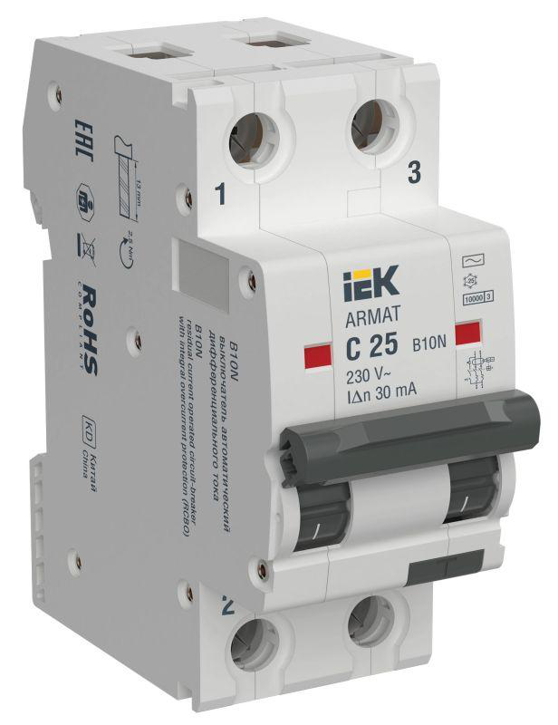 В нашем магазине «Главэлектрика» в Набережных Челнах, вы можете приобрести товар: «ARMAT Автоматический выключатель дифференциального тока B10N 2P C25 30мА тип AC IEK» с доставкой по г. Набережные Челны.