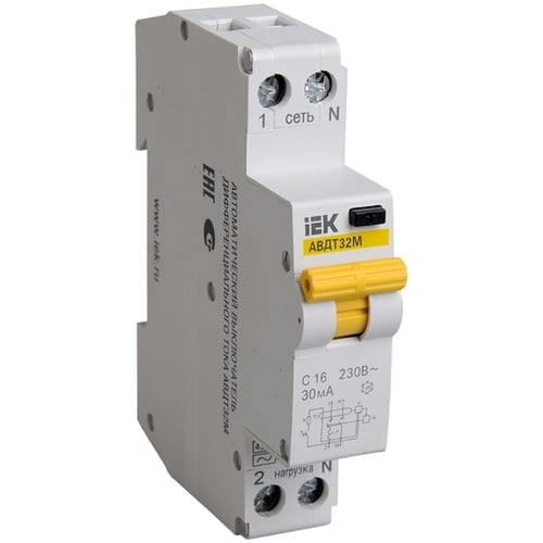 Автоматические выключатели дифференциального тока АВДТ32М для однофазных сетей в одномодульном исполнении (18мм) предназначены для защиты человека от поражения электрическим током при повреждении изоляции электроустановок, а также для защиты от перегрузки и короткого замыкания в сетях переменного тока напряжением 230 В и частотой 50 Гц. и по своим характеристикам соответствуют ГОСТ Р 51327.1 и ГОСТ Р 51327.2.2.