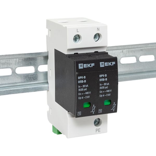 УЗИПы серии ОПВ относятся к классу II и применяются для защиты токораспределительной сети объекта от коммутационных помех или как вторая ступень защиты при ударе молнии. Тип "B" характеризуется номинальным разрядным током 30кА, максимальным разрядным током 60кА с формой волны 8/20 мкс.