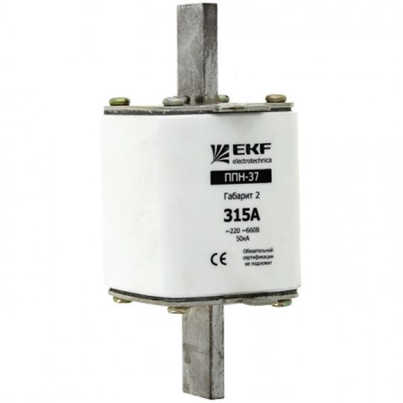 Плавкая вставка ППН-37 400/315А габарит 2 EKF. Предохранители плавкие ППН EKF, укомплектованные плавкими вставками типа gG/gL, предназначаются для защиты кабельных линий и промышленных электроустановок от токов перегрузки и короткого замыкания. Предохранители применяются в электрических сетях переменного тока частотой 50 Гц с напряжением до 660В. Применяются для крепления в распределительных и вводно-распределительных устройствах. Предохранители плавкие ППН могут устанавливаться в основание с держателем, а также в специально предназначенные рубильники. В комплект поставки предохранителей плавких ППН основание с держателем не входит и приобретается отдельно.