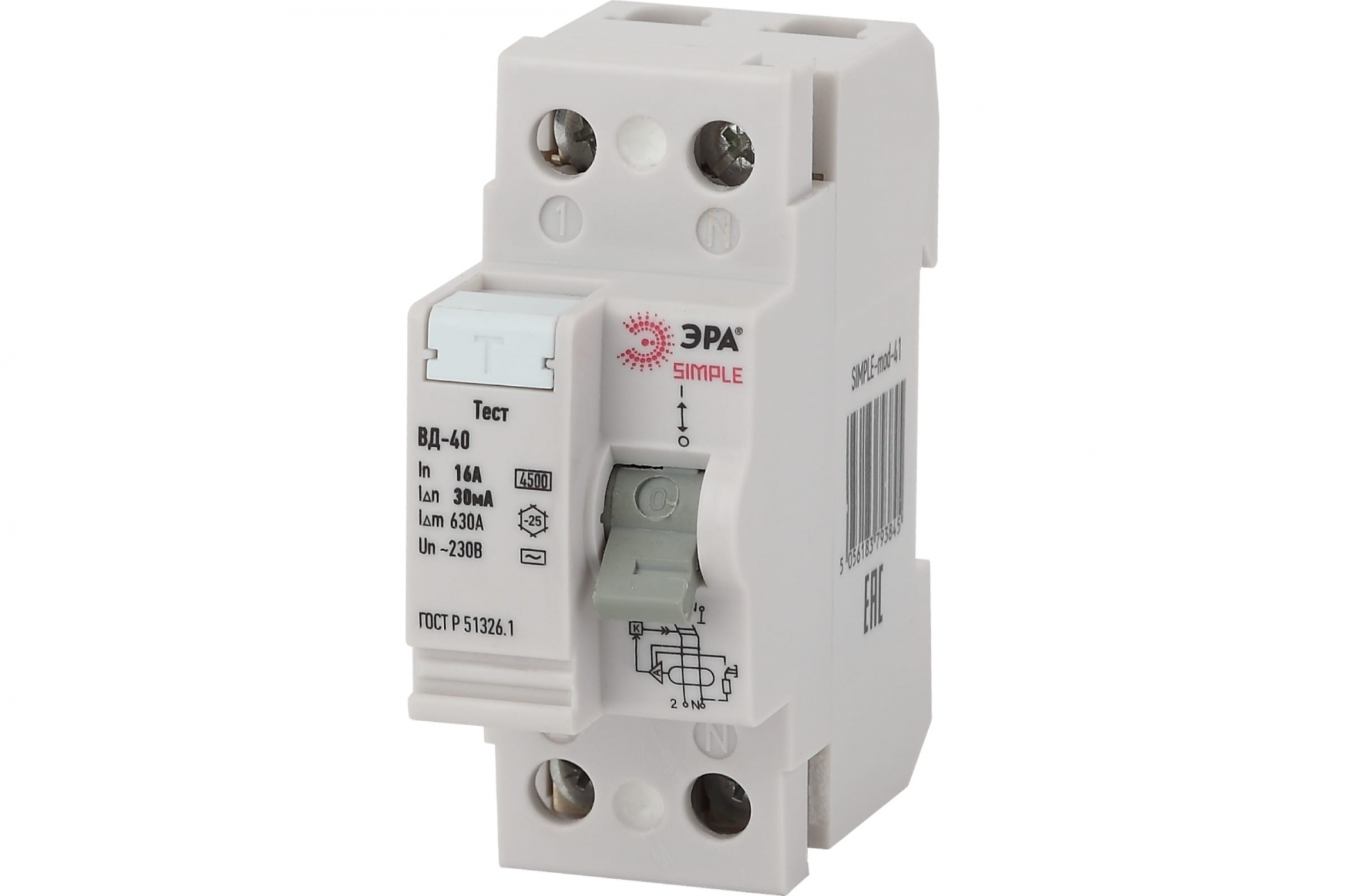 УЗО ЭРА SIMPLE ВД-40 2P 25А/30мА электронное Б0039262 обладает компактными размерами и легкостью в установке. Простое подключение позволяет использовать его как в жилых, так и в коммерческих объектах.
