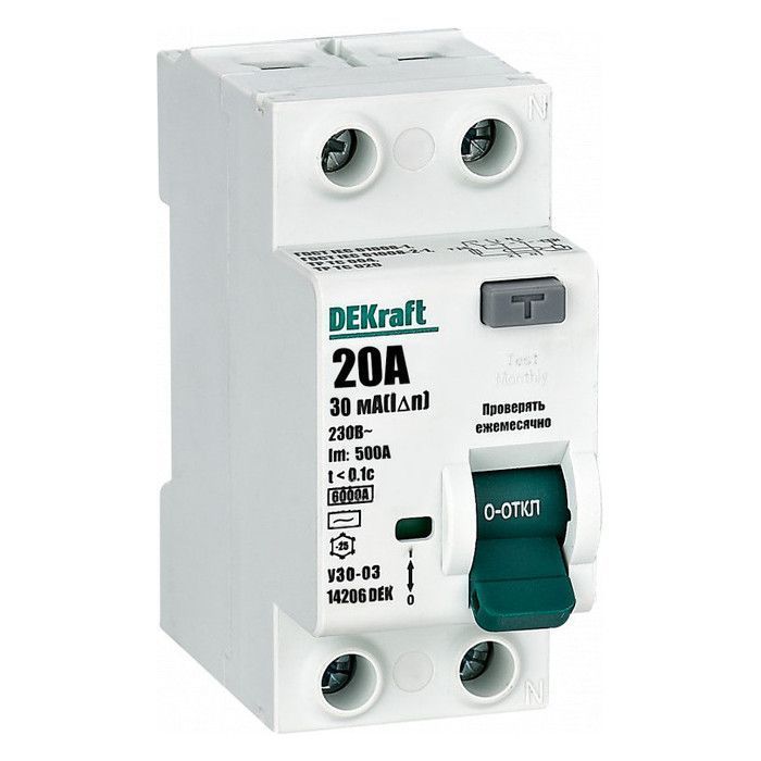 УЗО DEKraft УЗО-03 2P 20А 6 кА, 30 мА (AC), 14206DEK - это двухполюсное устройство защитного отключения, предназначенное для обеспечения безопасности электрических цепей. Данное УЗО имеет номинальный ток 20А, предельную отключающую способность 6 кА и чувствительность 30 мА (переменный ток). Продукт обеспечивает надежную защиту от утечки тока и короткого замыкания, что позволяет предотвратить возможные аварийные ситуации и обеспечить непрерывную работу электрооборудования. УЗО DEKraft УЗО-03 2P 20А 6 кА, 30 мА (AC), 14206DEK отличается высоким качеством, надежностью и простотой в установке, что делает его идеальным выбором для использования в различных электрических системах.