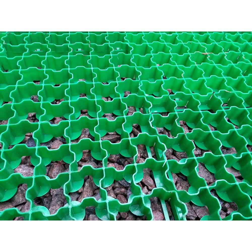 Газонная решетка представляет собой объемные трехмерные модули с крупной ячеистой структурой. Ячейки полотна заполняются после укладки смесью любого плодородного грунта с семенами. После этого грунт желательно уплотнить и полить водой из шланга. Через некоторое время трава прорастет сквозь решетку и образует сплошной зеленый ковер, на который можно будет ставить машины, ходить по нему или играть в подвижные игры. Газонную решетку купить стоит, если вы хотите привести в порядок двор, решили облагородить территорию школы или хотите устроить детскую площадку.