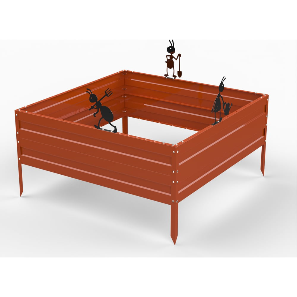Грядка Metalex серия KitGarden 1 х 1 х 0.3 м. Оранжевая.Изготовлена из металла толщиной 0,8 мм, что является самой большой толщиной на Российском рынке. После установки грядки не требуют дополнительного ухода. По периметру грядки есть перфорация: размер 7 мм, шаг 50 мм, который позволяет устанавливать декоративные элементы и аксессуары. Усилительные уголки надежно соединяют боковины грядки друг с другом и задают правильную геометрическую форму. В комплект входит набор колышков, который надёжно удерживает грядку в земле. Порошковое покрытие защищает металл от коррозийных процессов и обеспечивает продолжительный срок службы. В набор входит комплект декоративных элементов «Веселые муравьи», они добавляют индивидуальный облик вашему дачному участку. По желанию его можно не устанавливать. Высота панелей грядок - 150 мм,высота ограждения-300 мм. Соединение: Болтовое. Материал : сталь 0,8 мм. Цвет: оранжевый