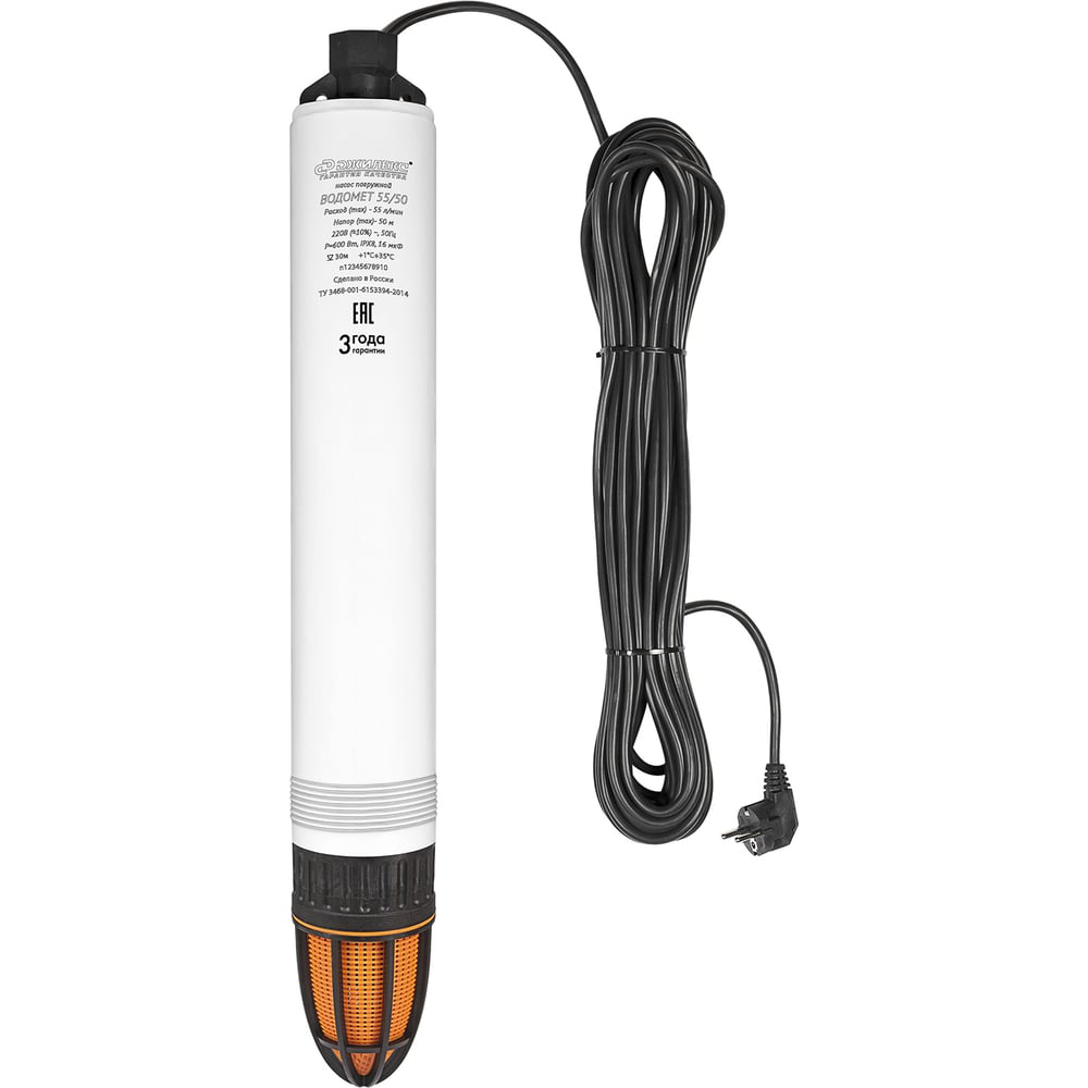 Погружной насос для скважин «ВОДОМЕТ» 55/50 подходит для использования в колодцах и скважинах диаметром более 110 мм; открытых водоемах и резервуарах; системах автоматизированной подачи воды в частных домах; оросительных системах на садовых участках. Технические особенности: Возможна работа при частичном погружении в воду на 25-30 см; Может перекачивать воду с содержанием песка до 2 кг на 1 м3 воды; Встроенный конденсатор; Двигатель охлаждается перекачиваемой водой; Комплектуется фирменным обратным клапаном.